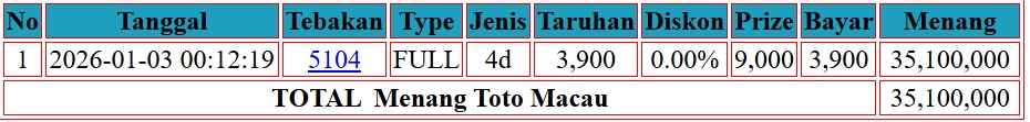 Selamat kepada User ID AYA*** telah mendapatkan kemenangan besar di DI TOGEL { TOTO MACAU} Rp. 30.000.000 LUNAS dan SAH !!!