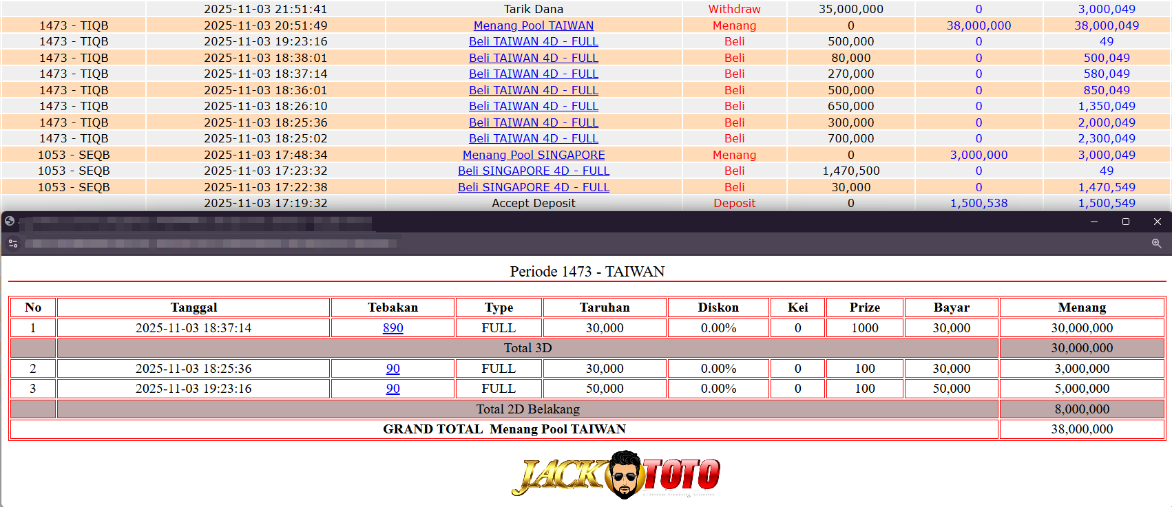 JACKTOTO BUKTI PEMBAYARAN KEMENANGAN MEMBER USER ID DEX*** DI TOGEL {TAIWAN} 35.000.000 LUNAS DAN SAH !!! πŸ†οΈ