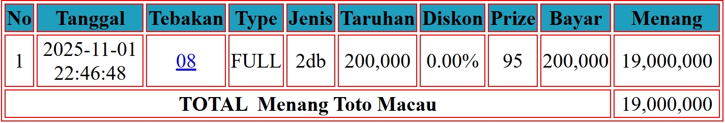 JACKTOTO BUKTI PEMBAYARAN KEMENANGAN MEMBER USER ID DEY*** DI TOGEL { Toto Macau} 19.000.000 LUNAS DAN SAH !!! ποΈ