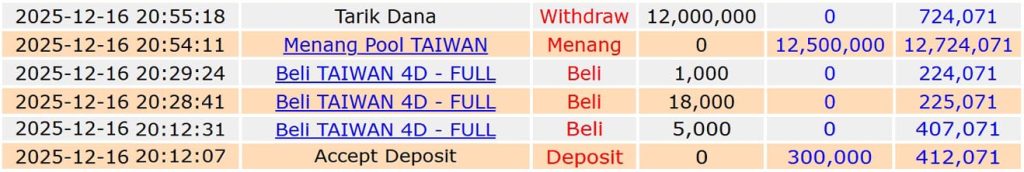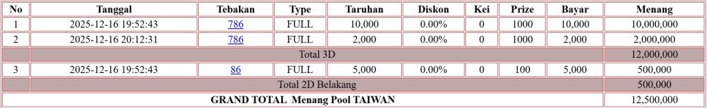 Selamat kepada User ID IKR*** telah mendapatkan kemenangan besar di TOGEL { TAIWAN } Rp. 12.000.000 LUNAS dan SAH !!!