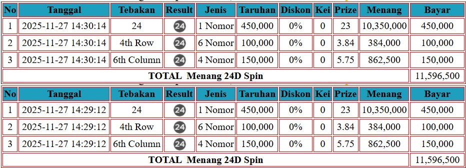 Selamat kepada User ID KIE*** telah mendapatkan kemenangan besar DI CASINO {ROULETTE} 28.000.000 LUNAS dan SAH!!!