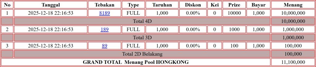 Selamat kepada User ID LEA*** telah mendapatkan kemenangan besar di TOGEL { HONGKONG } Rp. 11.000.000 LUNAS dan SAH !!!