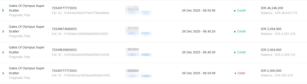 Selamat kepada User ID PAU*** telah mendapatkan kemenangan besar di SLOT { GATES OF OLYMPUS SUPER SCATTER } Rp. 46.633.000 LUNAS dan SAH !!!