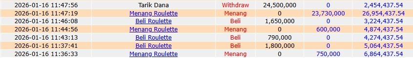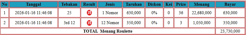 Selamat kepada User ID PER** telah mendapatkan kemenangan besar di SLOT { Roulette } Rp.24.500.000 LUNAS dan SAH