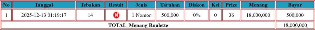 Selamat kepada User ID PO*** telah mendapatkan kemenangan besar di CASINO { ROULETTE } Rp. 15.000.000 LUNAS dan SAH !!!