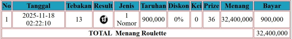 JACKTOTO BUKTI PEMBAYARAN KEMENANGAN MEMBER USER ID POK*** DI CASINO {ROULETTE} 27.000.000 LUNAS DAN SAH !!! ποΈ