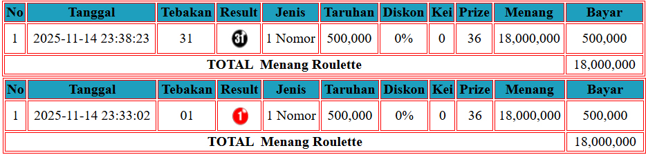 Selamat kepada User ID POK*** telah mendapatkan kemenangan besar DI CASINO Β {ROULETTE} 50.800.000 Β LUNAS dan SAH!!!