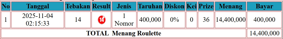 JACKTOTO BUKTI PEMBAYARAN KEMENANGAN MEMBER USER ID POX*** DI CASINO {ROULETTE} 10.000.000 LUNAS DAN SAH !!! 🏆️