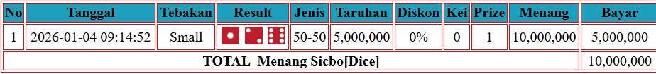 JACKTOTO BUKTI PEMBAYARAN KEMENANGAN MEMBER USER ID PRU*** DI LIVE CASINO { SICBO {DICE} } Rp. 23.500.000 LUNAS DAN SAH !!! 🏆️