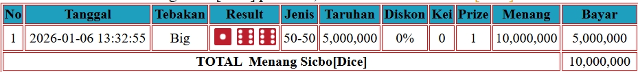 JACKTOTO BUKTI PEMBAYARAN KEMENANGAN MEMBER USER ID PRU*** DI LIVE CASINO { SICBO {DICE} } Rp.20.500.000 LUNAS DAN SAH !!! 🏆️