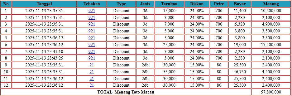 Selamat kepada User IDΒ TWO*** telah mendapatkan kemenangan besar di TOGEL {TOTO MACAU 4D} 50.000.000 Β LUNAS dan SAH !!! ποΈ