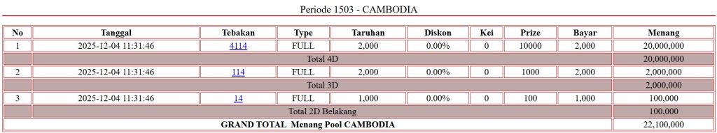 Selamat kepada User ID WID** telah mendapatkan kemenangan besar di TOGEL { CAMBODIA } Rp. 22.000.000 LUNAS dan SAH !!!